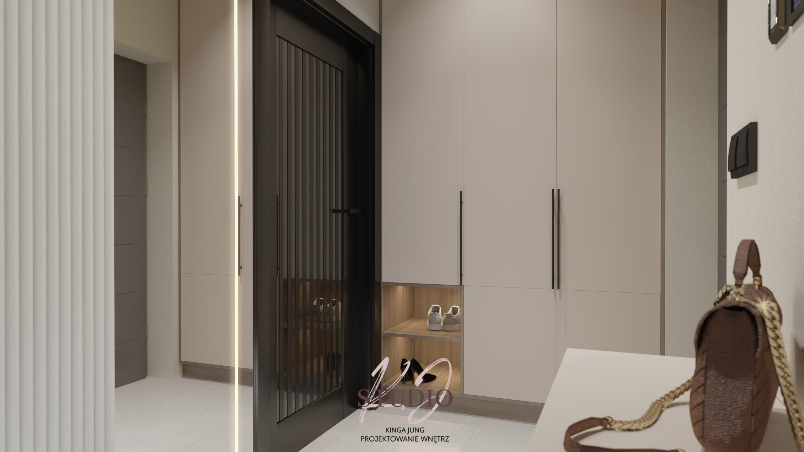 W wiatrołapie znajduje się: duża szafa na buty